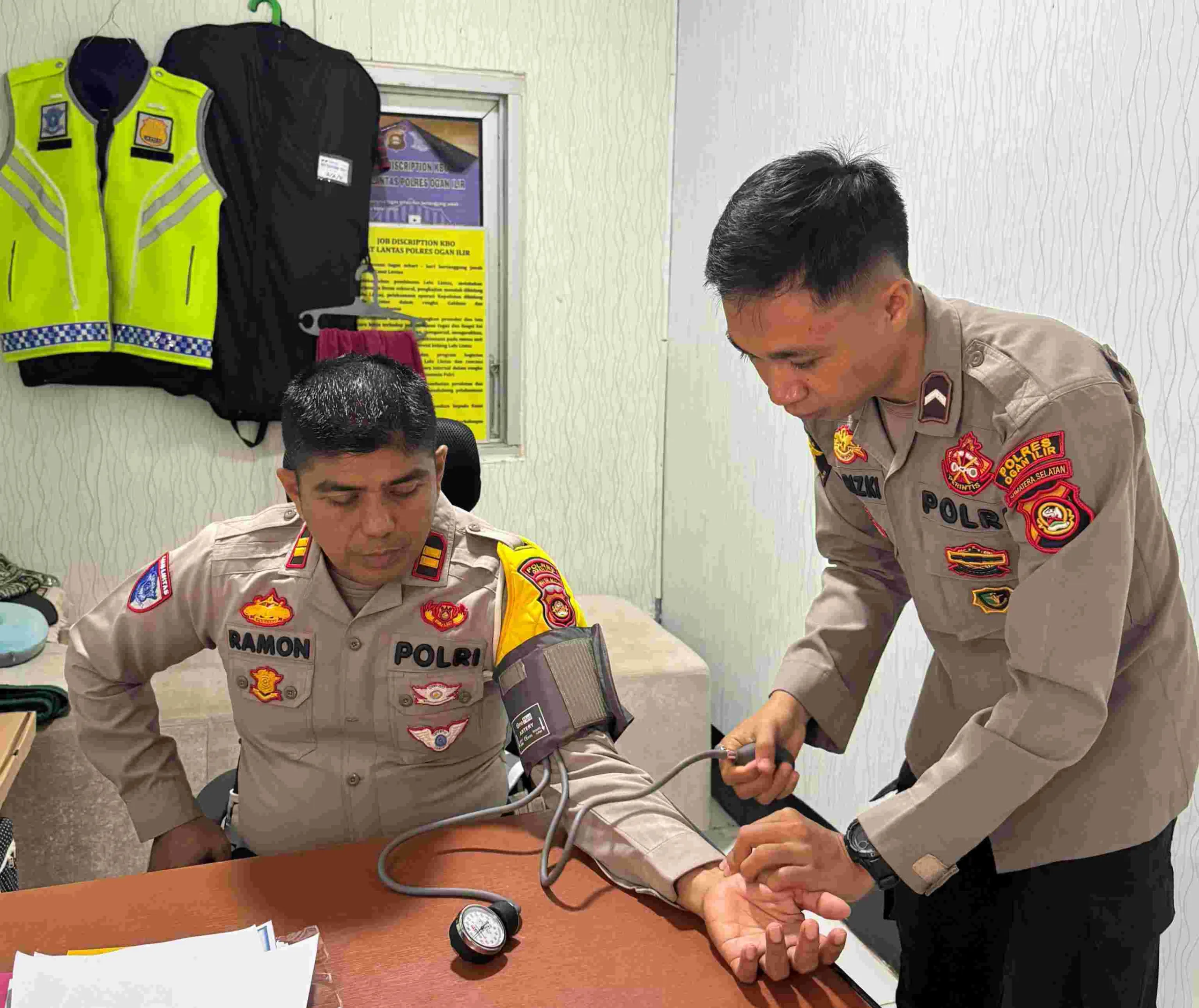 Dalam rangka mendukung kesehatan personel, Sidokkes Polres Ogan Ilir melaksanakan Rikkes (Pemeriksaan Kesehatan) yang meliputi pemeriksaan tekanan darah serta pemberian vitamin dan obat-obatan.