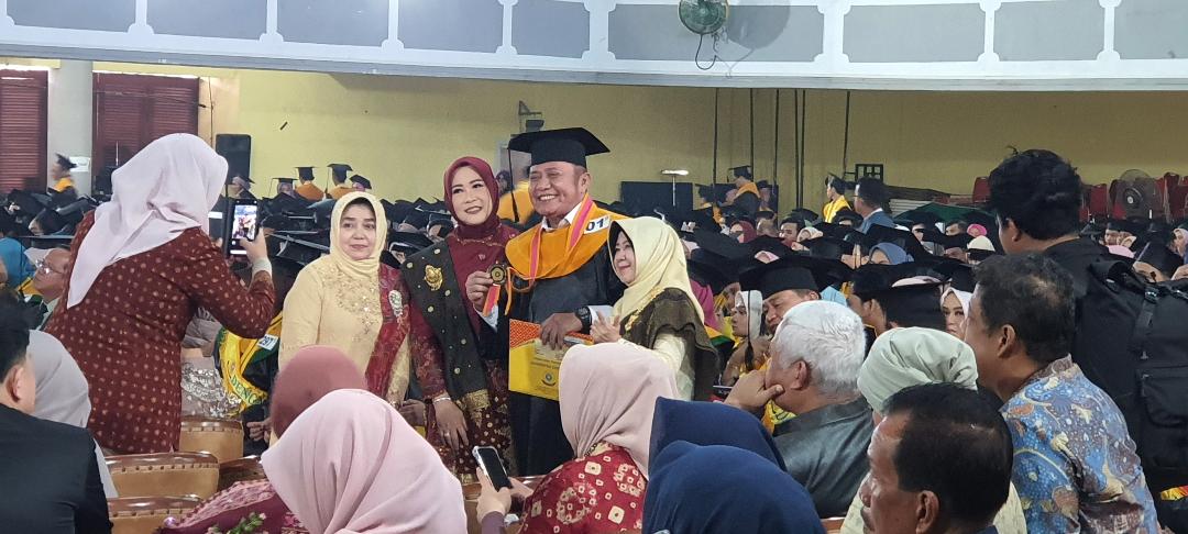 Dari sekian ribu para wisudawan dan wisudawati, terlihat ada orang nomor satu di Sumsel, yakni H Herman Deru Gubernur Sumsel ikut diwisuda dengan no urut 01 yang tertempel didada sebelah kiri.