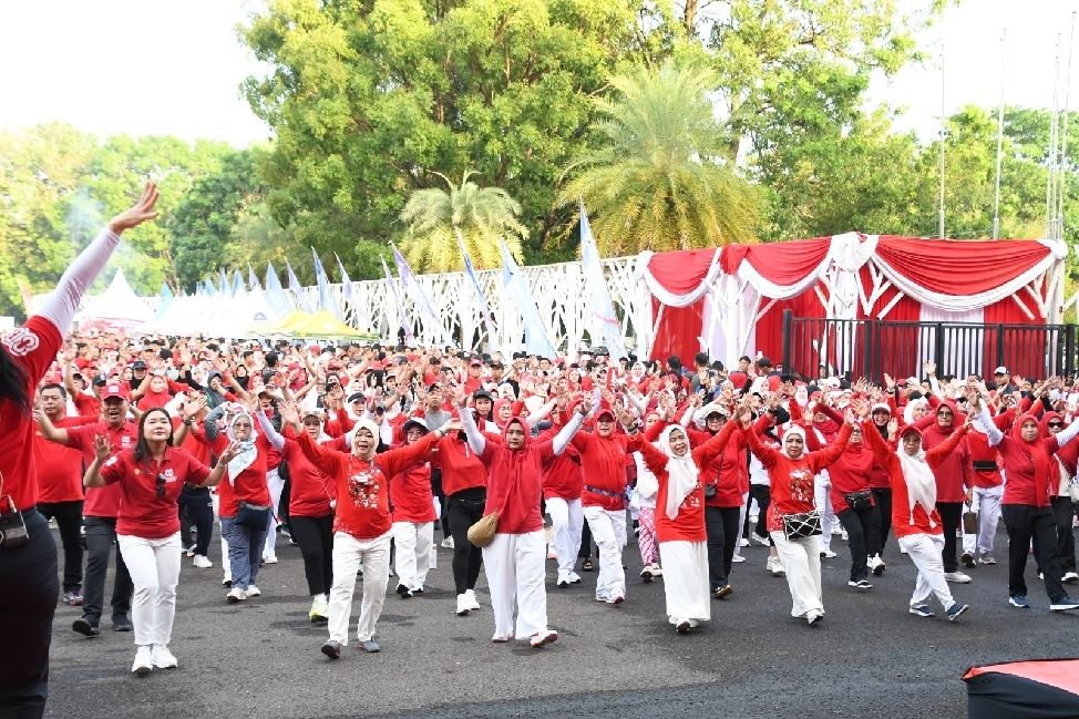 Palembang–inidianews.com-Komandan Korem 044/Garuda Dempo Brigjen TNI Adri Koesdyanto mengikuti kegiatan jalan santai dan lomba gembira bersama Pemerintah Provinsi Sumatera Selatan (Sumsel) Minggu 24 Agustus 2025.
