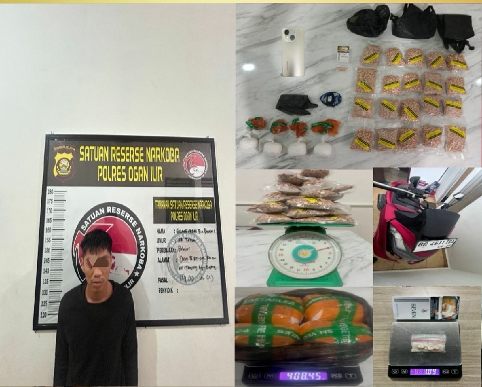 Seorang pemuda berinisial GA (23 tahun) diamankan bersama barang bukti ribuan butir pil ekstasi dan ratusan gram sabu dalam operasi penindakan di Jl. Lintas Sumatera, Kelurahan Timbangan, Kecamatan Indralaya Utara, Kabupaten Ogan Ilir, Kamis Sore 11 September 2025.