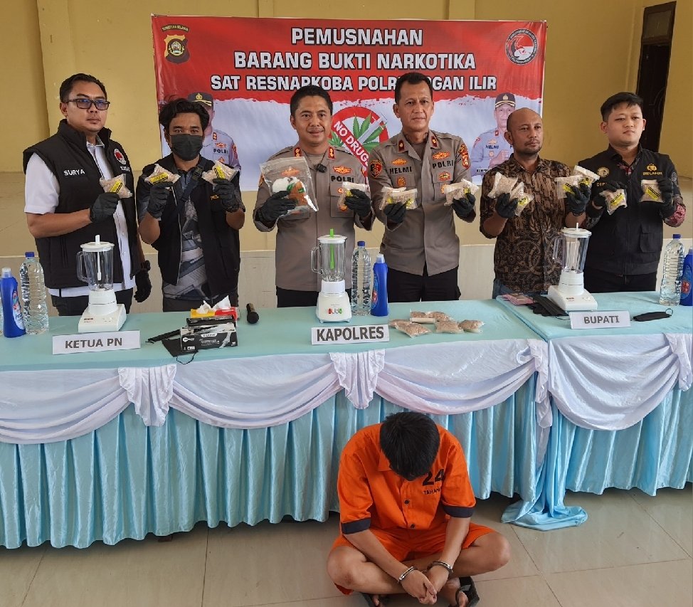 Pemusnahan dipimpin Kapolres Ogan Ilir AKBP Bagus Suryo Wibowo.S.I.K didampingi Wakapolres Ogan Ilir Kompol Helmi Ardiansyah dan Kasat Res Narkoba Iptu A.Surya Atmaja.SH, hadir juga dari BNN Ogan Ilir, pengadilan negeri (PN) Kayuagung dan Kejaksaan Ogan Ilir