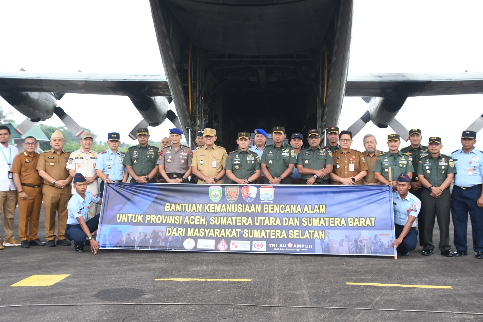 Pengiriman bantuan menggunakan pesawat TNI AU C-130 Hercules dengan registrasi A-1328, yang disiapkan untuk mengangkut total 14,5 ton bantuan hasil donasi dari TNI, Polri, pemerintah daerah, dan masyarakat Sumatera Selatan.