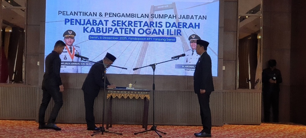 Sebelum dilakukan pelantikan dan pengambilan sumpah, Kepala BKPSDM H Wilson Effendi SH MSi membacakan surat keputusan Gubernur Sumatera Selatan (Sumsel) tertanggal 4 Desember 2025 mengenai persetujuan dan penetapan Sekda dengan Keputusan Bupati Ogan Ilir dengan NOMOR: 800.1.3/817/KEP/BKPSDM/2025, tentang pengangkatan sebagai Penjabat Sekda Kabupaten Ogan Ilir.