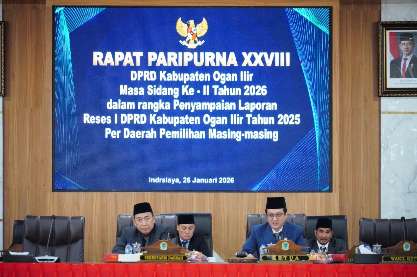 Inidianews.com -Dewan Perwakilan Rakyat Daerah (DPRD) Kabupaten Ogan Ilir menggelar Rapat Paripurna ke-XXVIII dalam rangka Penyampaian Laporan Reses I Anggota DPRD Kabupaten Ogan Ilir per Daerah Pemilihan (Dapil) masing-masing, Senin, 26 Januari 2026.