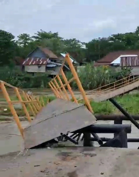 Kalau sebelumnya sempat ambruk sebagian, tapi kali ini ambruk hampir seluruhnya , peristiwa ambruknya jembatan tersebut terjadi Minggu 16 Februari 2026, sekitar pukul 16.30 Wib.