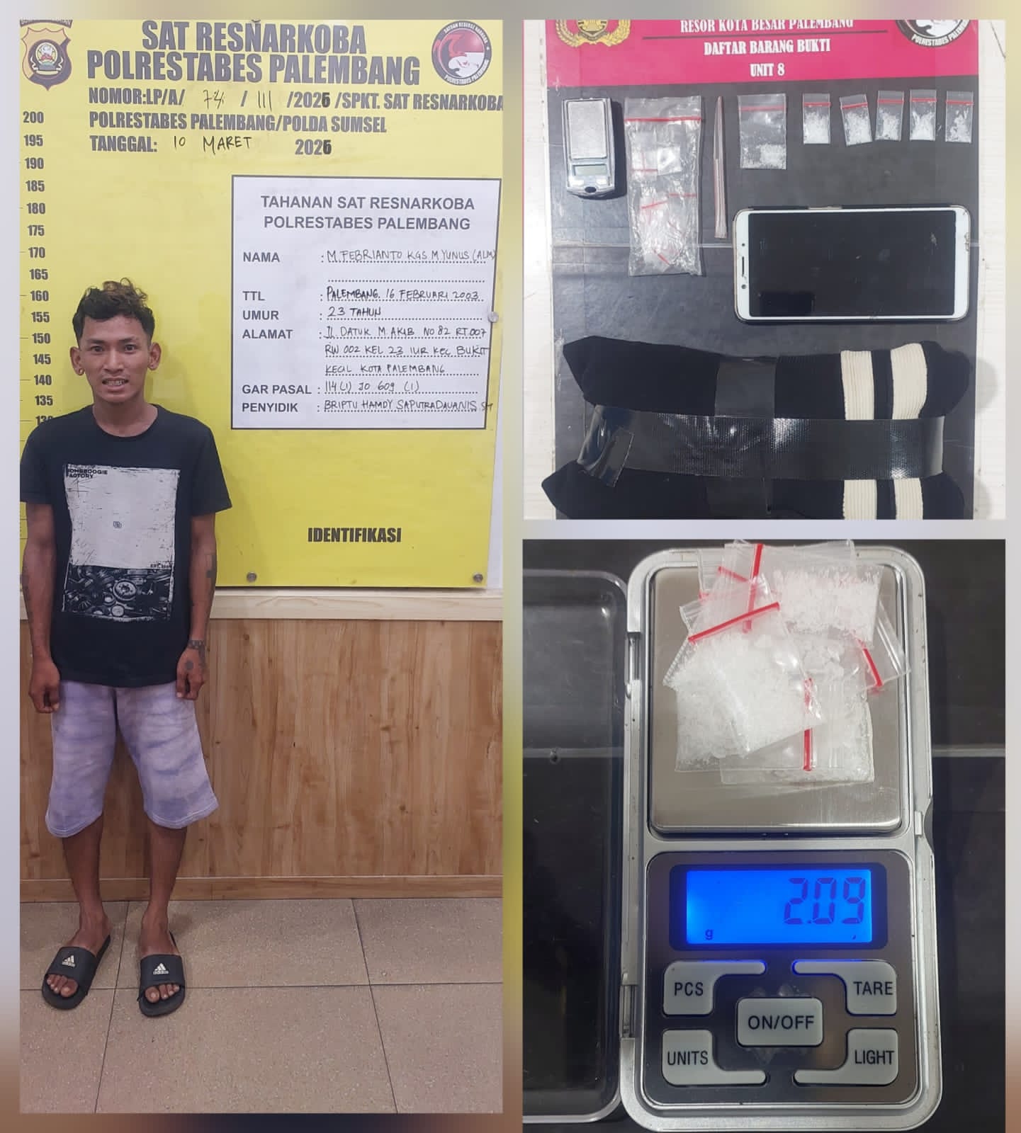 Palembang —Inidianews.com-Satuan Reserse Narkoba Polrestabes Palembang mengungkap dua kasus peredaran narkotika jenis sabu secara beruntun dalam operasi kurang dari 24 jam di wilayah Kota Palembang.