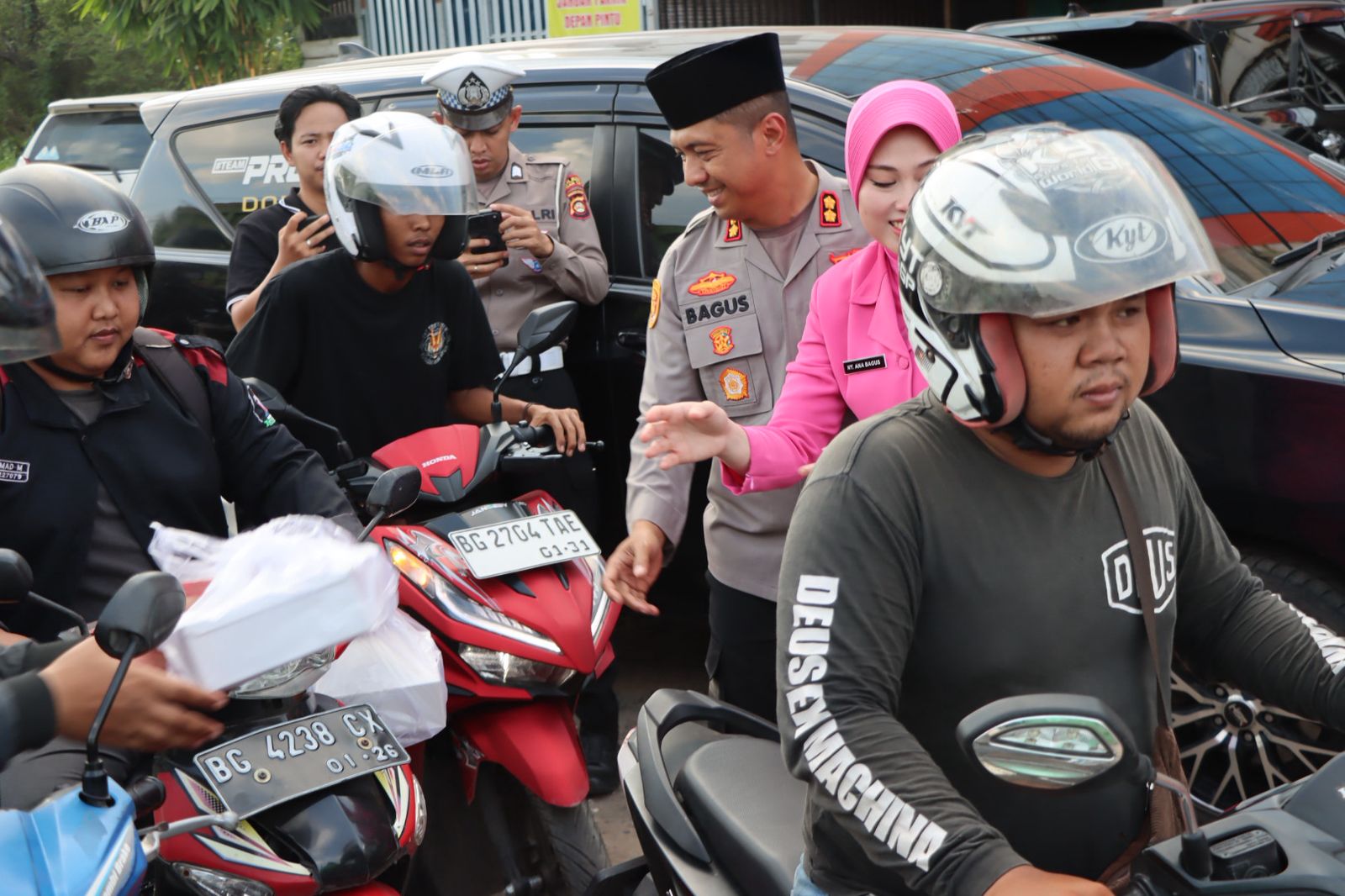 Dalam kegiatan tersebut, Polres Ogan Ilir bersama Bhayangkari membagikan sekitar 300 paket takjil kepada para pengguna jalan dan masyarakat yang melintas di lokasi kegiatan.
