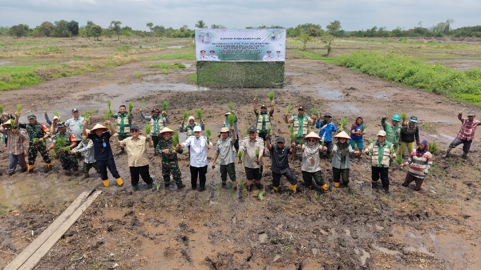 Banyuasin –INIDIANEWS.COM –Untuk mendukung program ketahanan pangan nasional (PKPN), dilaksanakan kegiatan tanam padi serentak di lokasi cetak sawah yang bertempat di Desa Merah Mata, Kecamatan Banyuasin I, Kabupaten Banyuasin, Provinsi Sumatera Selatan (Sumsel).