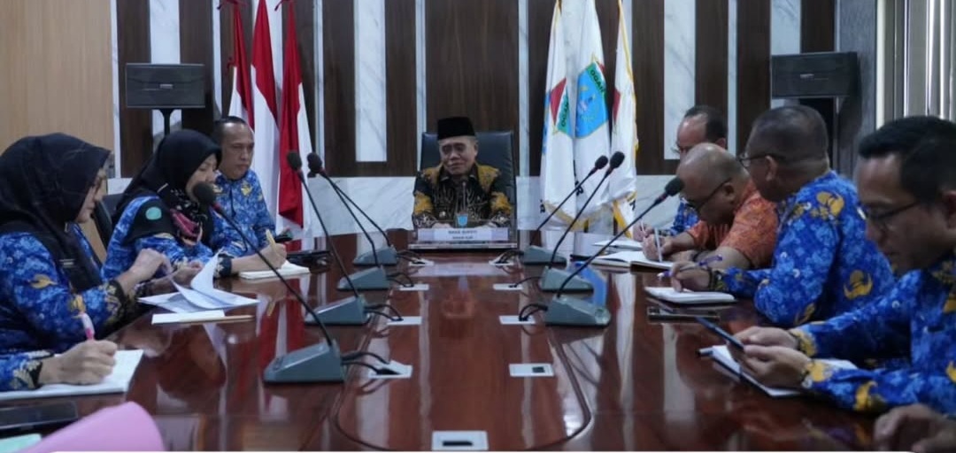 Acara rakor berlangsung di Ruang Rapat Wakil Bupati Tanjung Senai, Jumat 18 April 2026 lali.